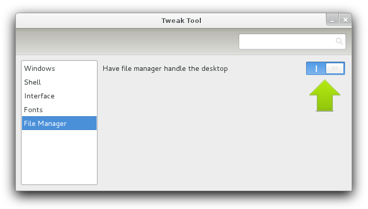 When implementing Tweak Tool, Go to section File Manager ,And enable the option "Have file manager handle the desktop".